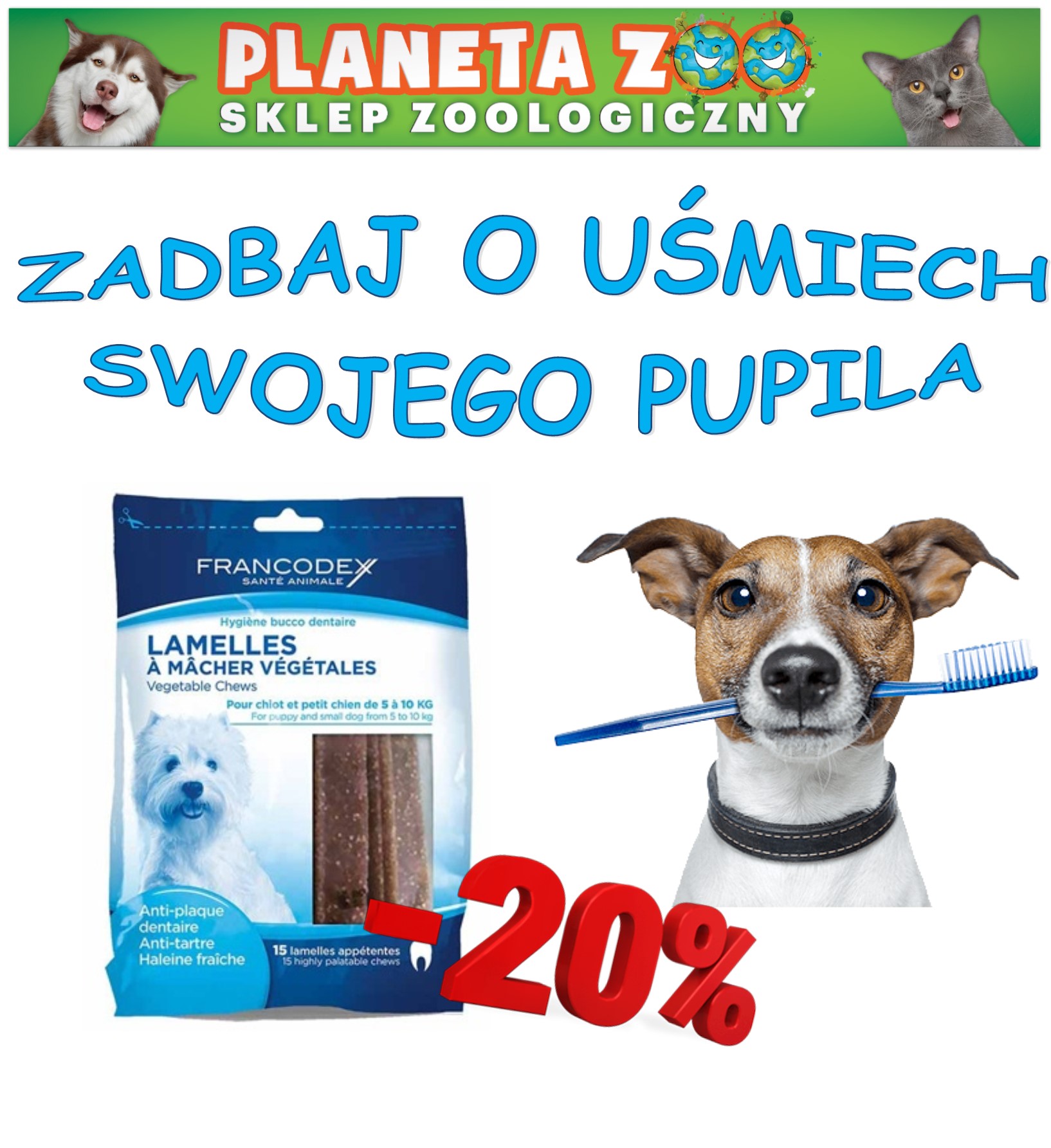 Francodex Lamelles to specjalistyczne roślinne paski do gryzienia usuwające kamień i brzydki zapach z pyszczka naszego pupila. Paski dentystyczne dostępne są w trzech rozmiarach - dla małych, średnich i dużych psów. Polecane także dla szczeniąt! Opakowanie zawiera 15 szt.