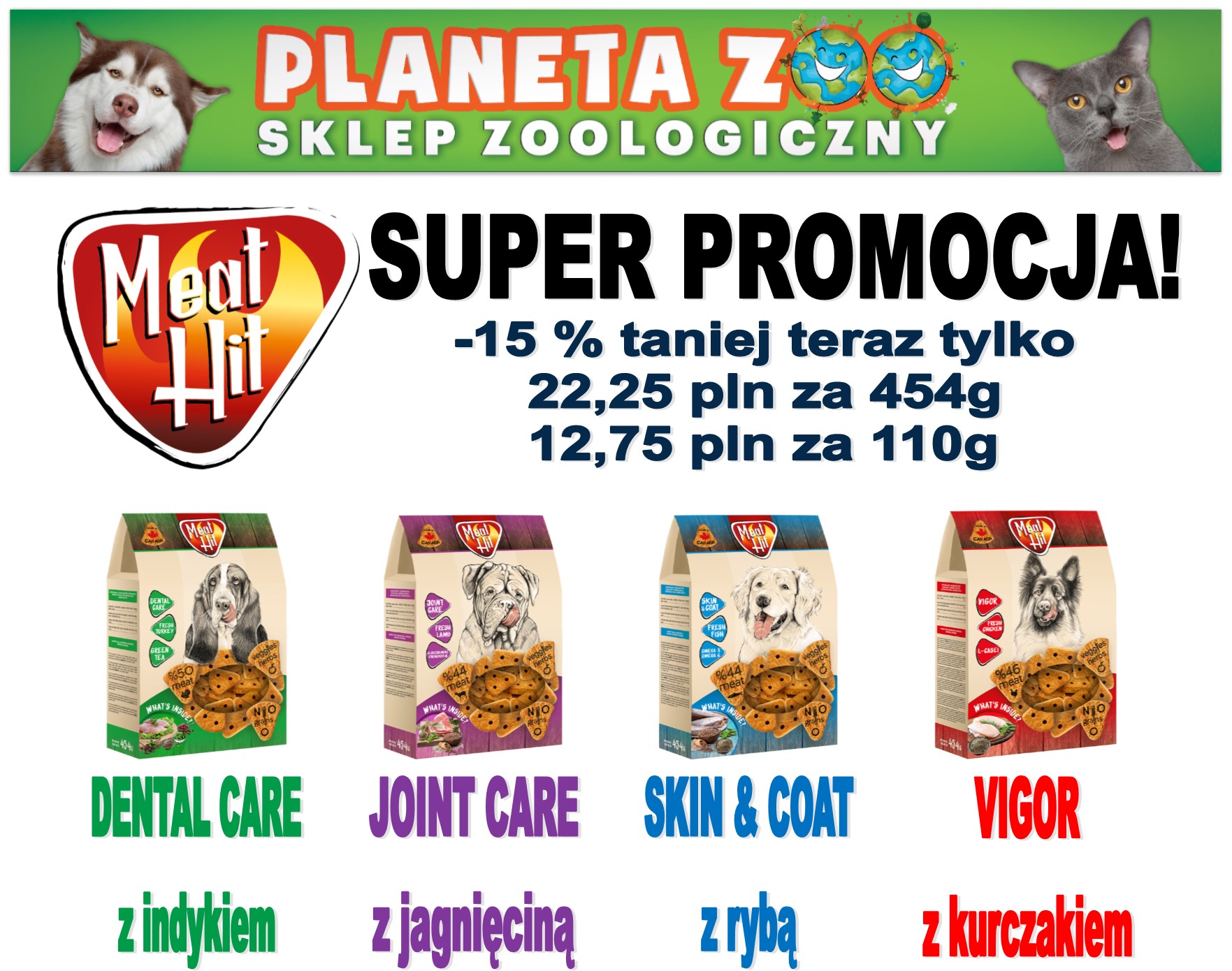 Ciastka MEAT HIT to wysokiej jakości bezzbożowy smakołyk dla psów wszystkich ras i w każdym wieku. Zostały wyprodukowane w Kanadzie przy użyciu techniki wypiekania - Oven Baked, dzięki której każde ciastko posiada wyjątkowe walory smakowe i zachowuje swoje wartości odżywcze.