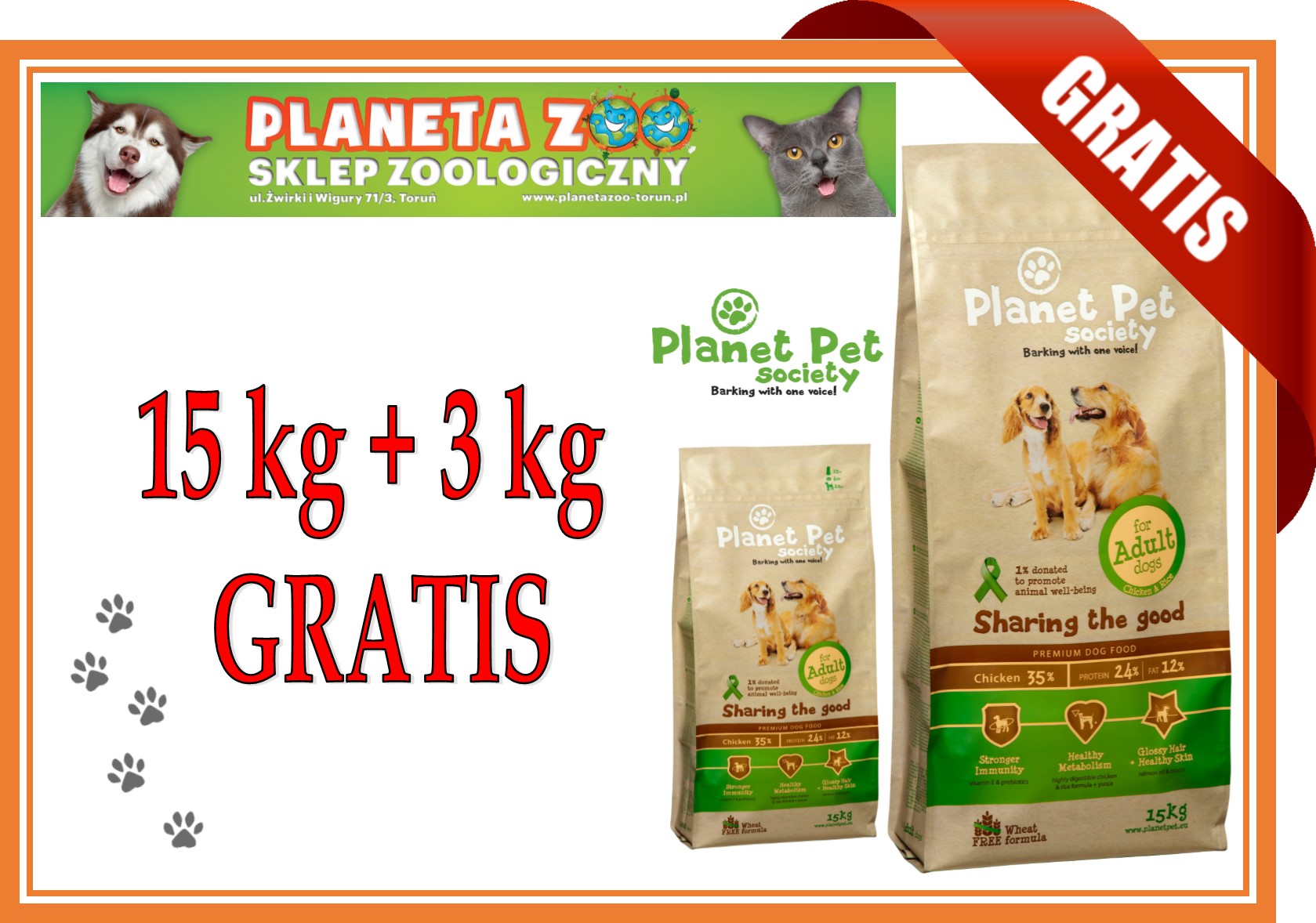 PROMOCJA - KARMA DLA PSÓW DOROSŁYCH 15KG + 3KG GRATOS